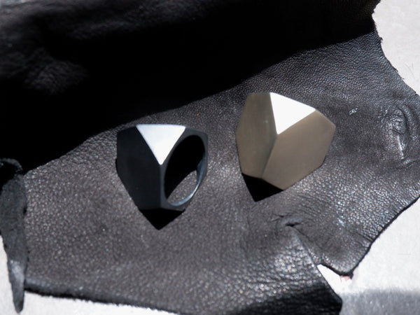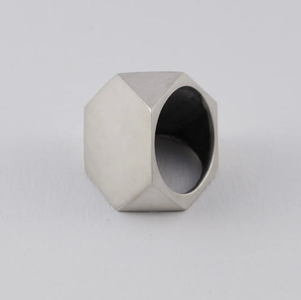 This Sterling Silver ring works with the concept of simple polyhedron geometric shapes, and their elegance when viewed and held from various perspectives.